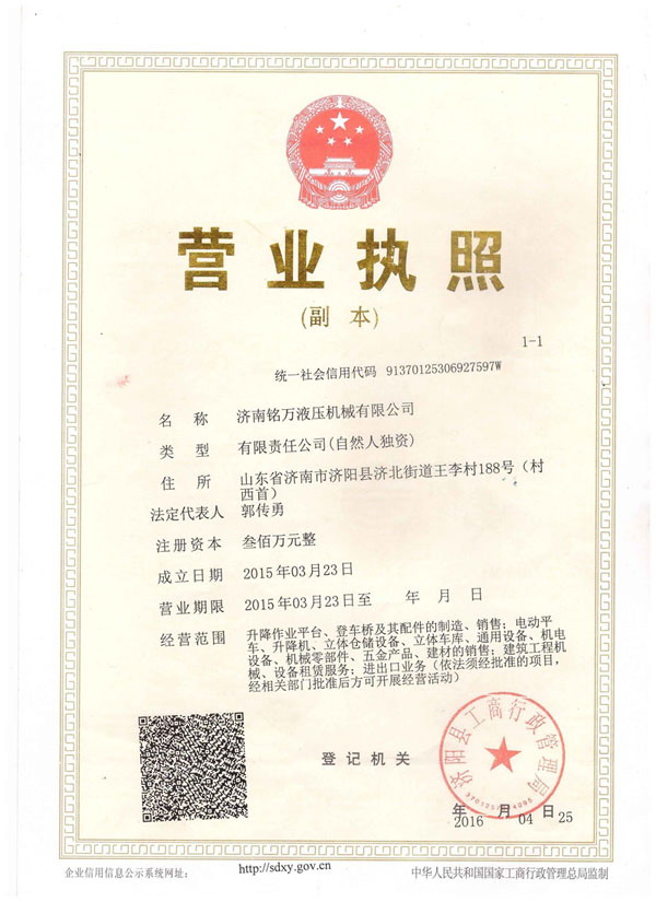+濟南銘萬液壓機械有限公司【原濟南機械廠】,是全國制造液壓升降機、升降平臺的廠家,產品有八大系列六十多個品種,規(guī)格齊全、質量穩(wěn)定、安全可靠、方便快捷;產品銷往全國各地,深受用戶好評。升降機廠家技術力量雄厚,產品設計先進、工藝成熟、實驗檢測手段完善,“質量第一,用戶至上”是我們的宗旨。 本公司采用先進的管理手段,嚴密的質量監(jiān)控體系和良好的售后服務隊伍為我們的產品走向市場創(chuàng)造......